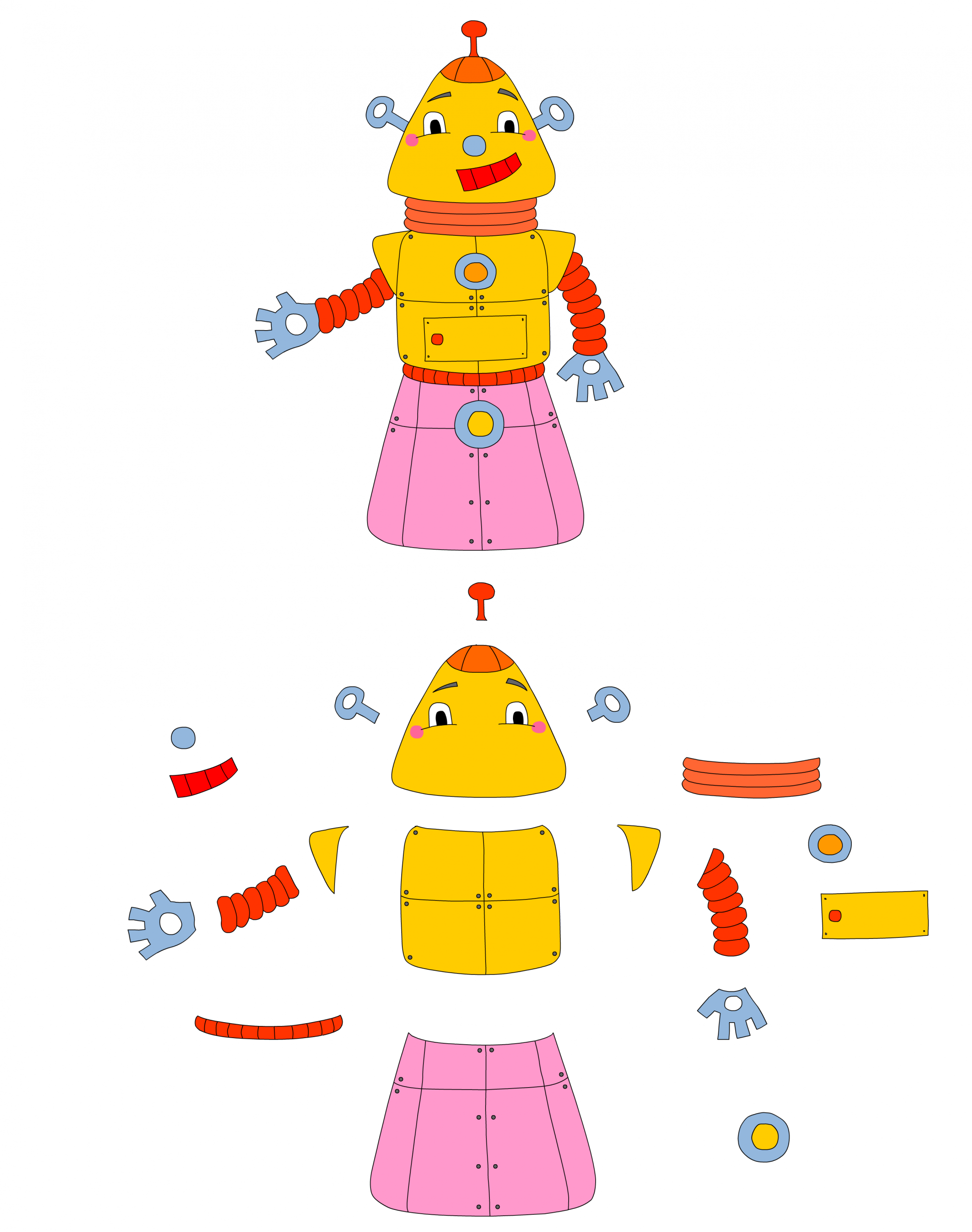 Robina ist eine von uns entwickelte Roboterfrau aus der PRESCOLARIS Online-Welt für Vorschulkinder von Bertelsmann. Sie wird aus Einzelteilen zusammengesetzt von Robo, dem Protagonisten des Onlinespiels. Jedes Einzelteil ist eine Belohnung der PRESCOLARIS-Welt.