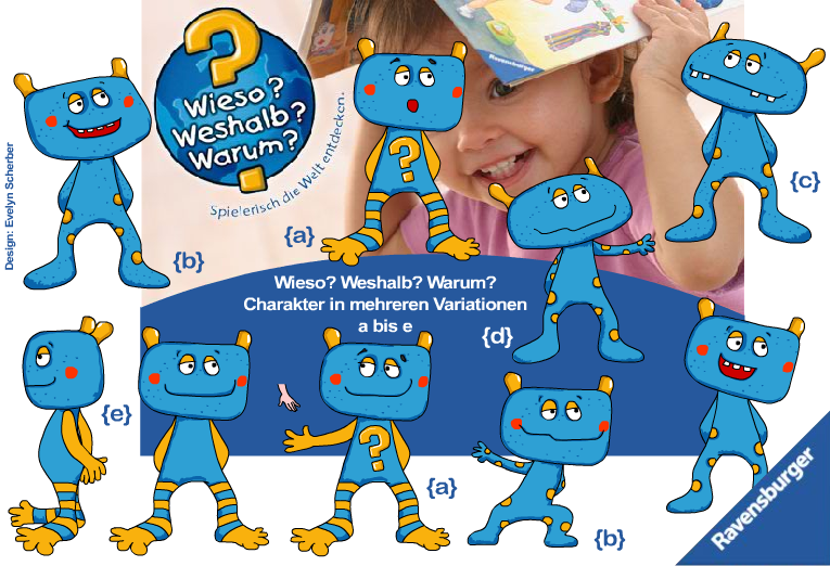 Für Ravensburger Digital haben wir für “Was ist Was?” diese bunten Charaktere entwickelt. Es sind Entwürfe für die geplante Onlinewelt für “Was ist Was?”. Dieser kleine Kobold soll den Kindern helfen, durch die Onlinewelt zu navigieren.